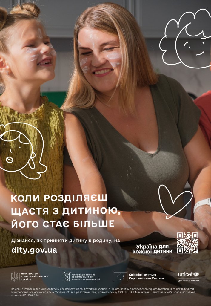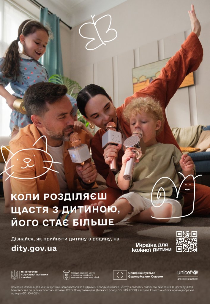 Кампанія «Україна для кожної дитини» здійснюється за підтримки Координаційного центру з розвитку сімейного виховання та догляду дітей, Міністерства соціальної політики України, ЄС та Представництва Дитячого фонду ООН (ЮНІСЕФ) в Україні. Її зміст не обов’язково відображає позицію ЄС і ЮНІСЕФ.